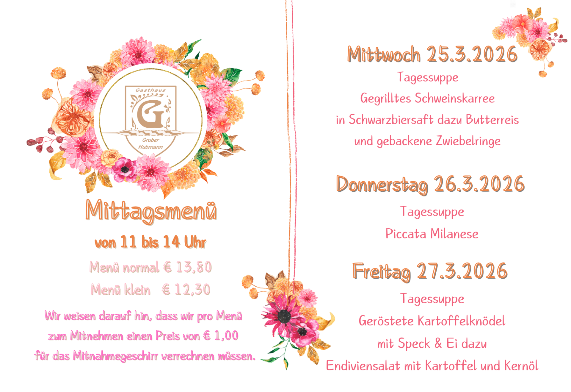 Zu Mittag hungrig ? Dann geniessen Sie unsere täglich wechselnden Mittagsmenüs