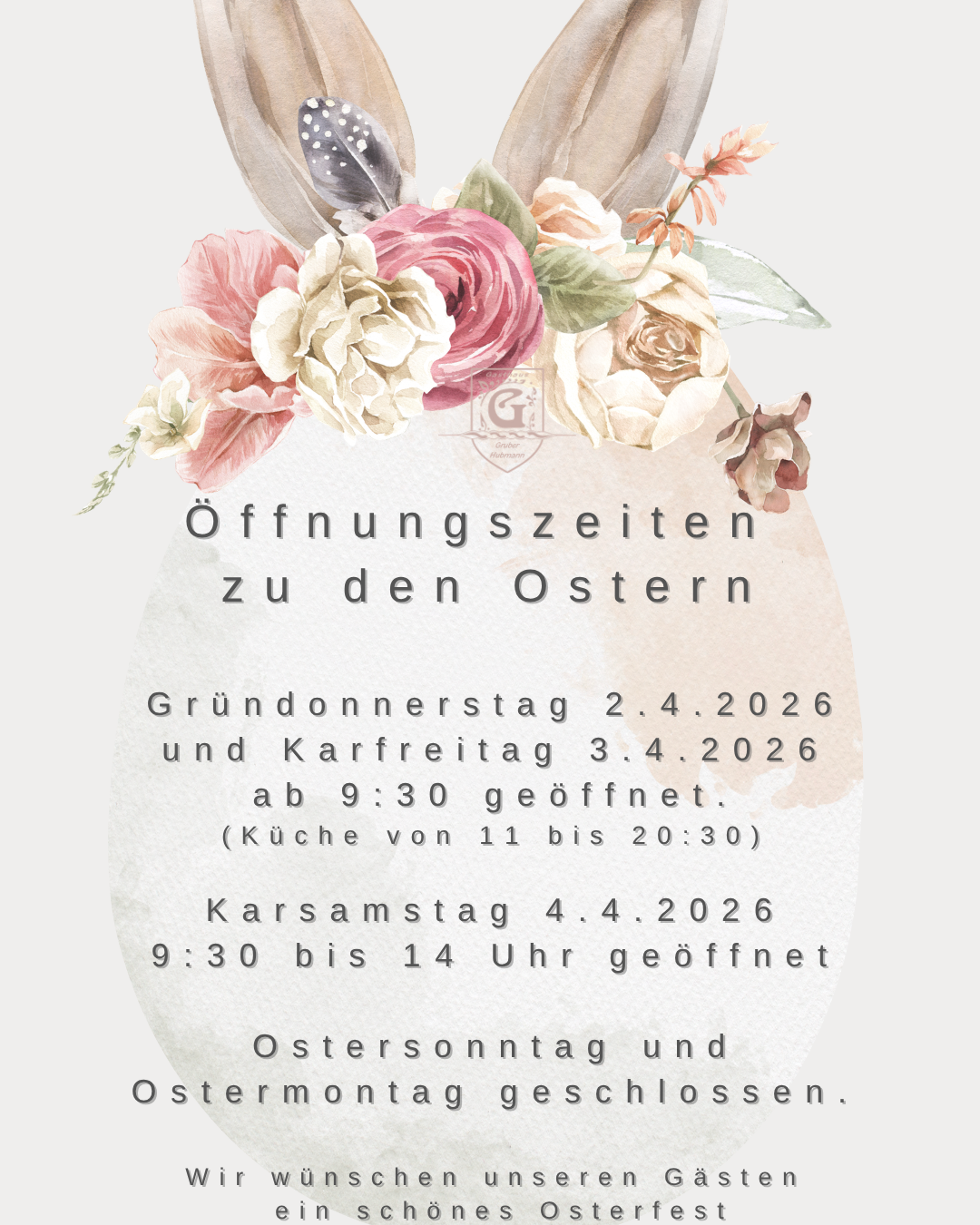 - durchgehend warme Küche von Mi. – Sa. von 11:00 – 20:30 Uhr